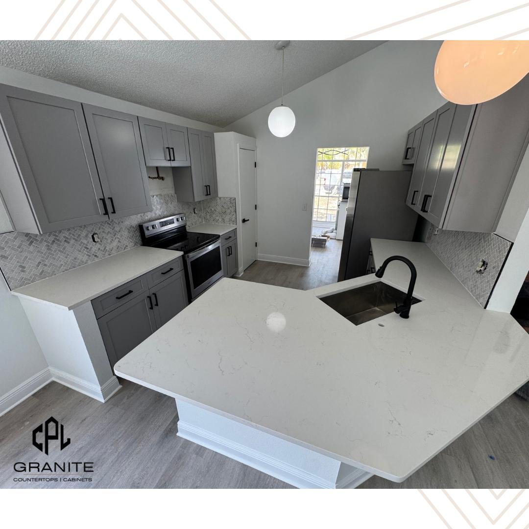 ”We love our new kitchen! The countertops are stunning, and the cabinets are beautifully crafted. Highly recommend CPL Granite for quality and service!”