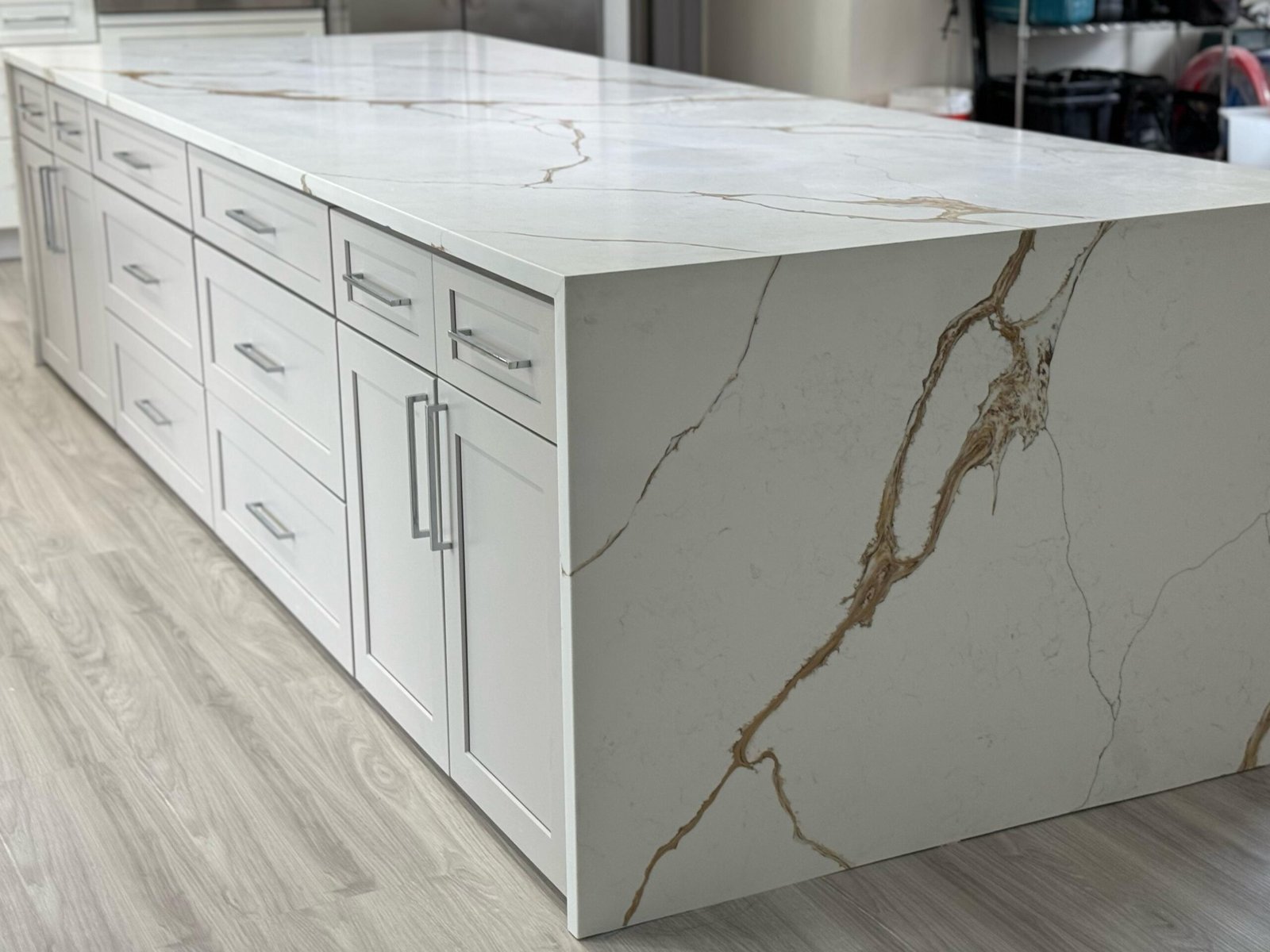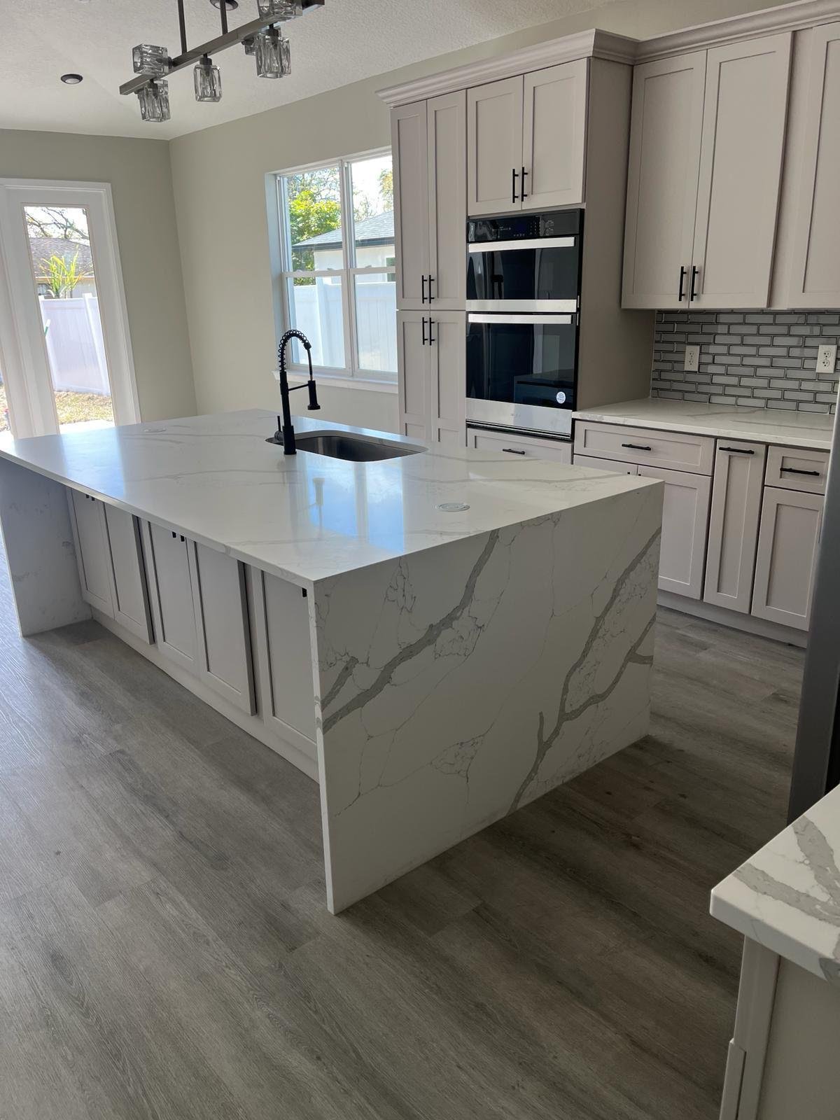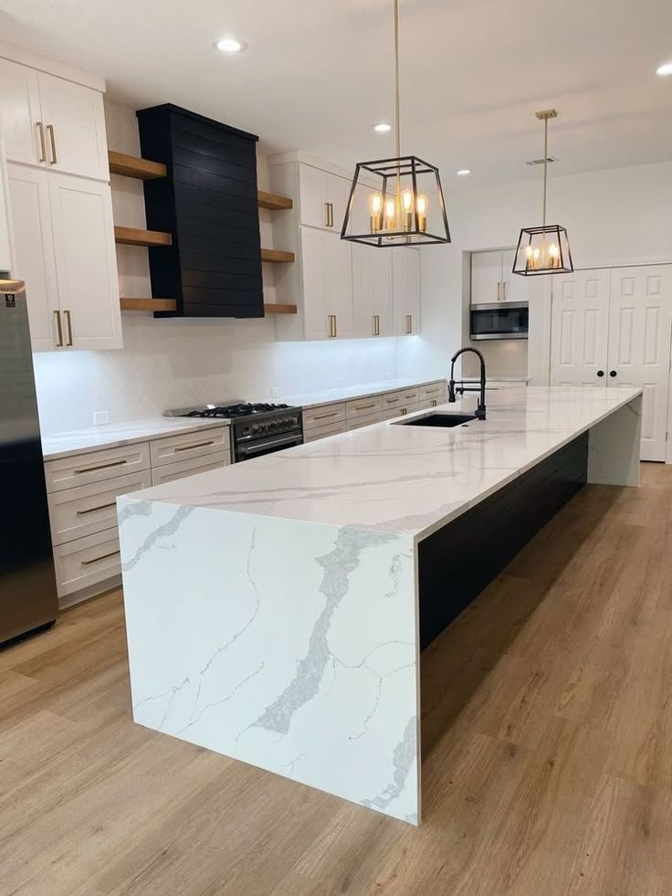 Explore our exquisite collection of large kitchen projects featuring beautiful countertops and island waterfalls, showcasing the perfect blend of functionality and elegance for your home.