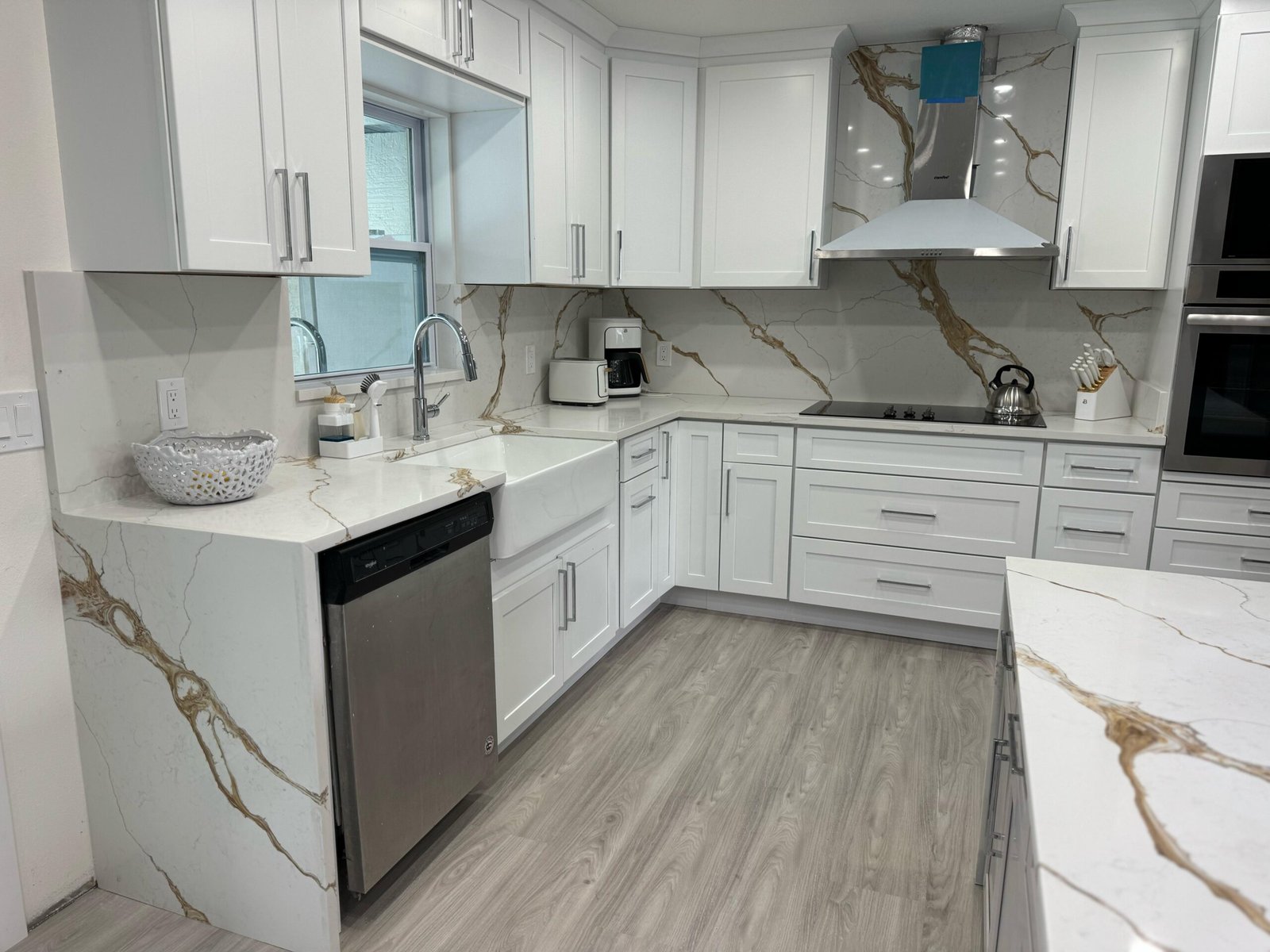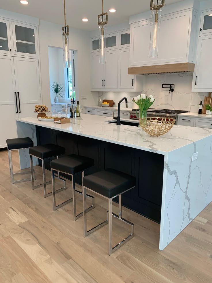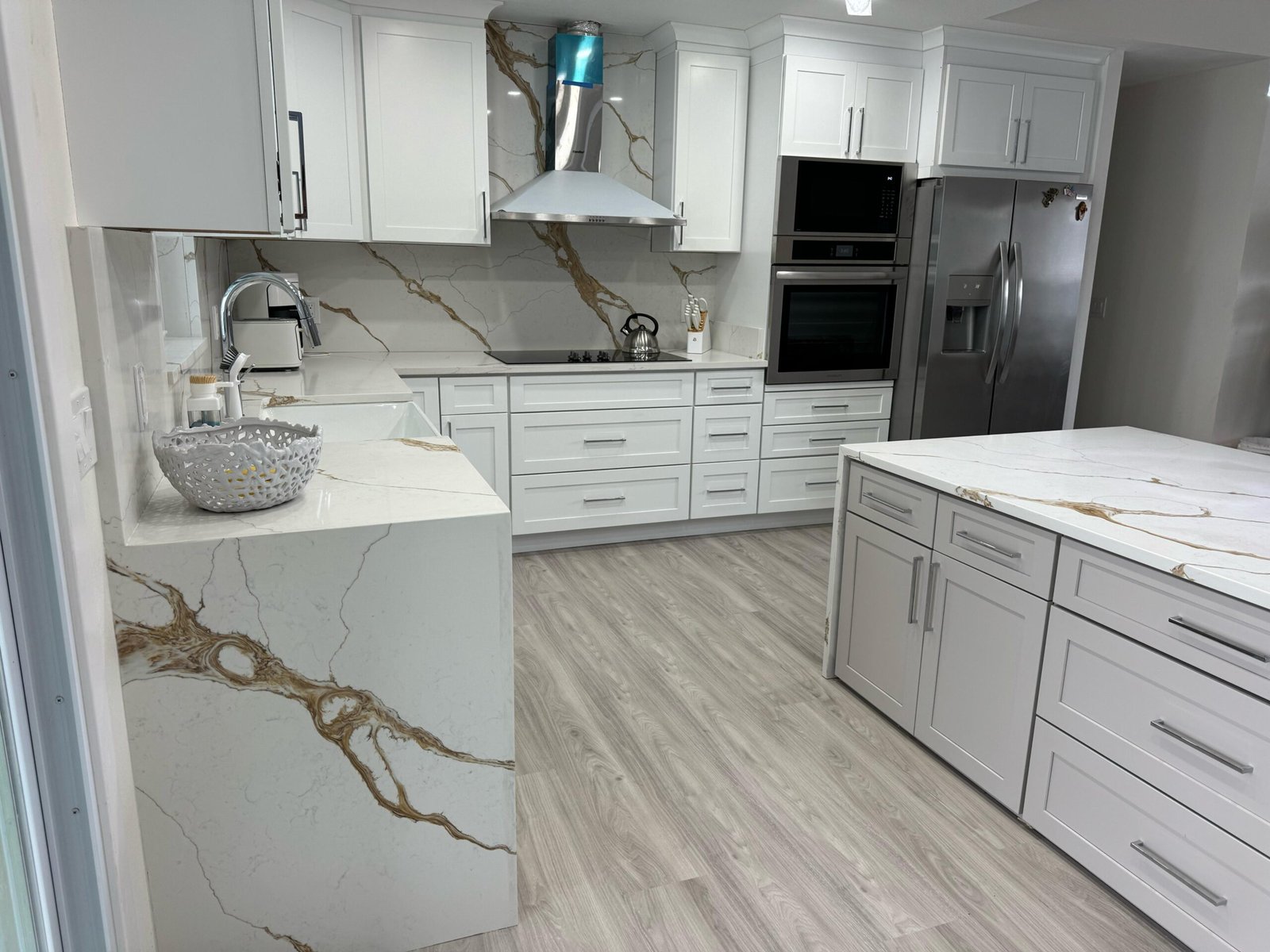 Explore our exquisite collection of large kitchen projects featuring beautiful countertops and island waterfalls, showcasing the perfect blend of functionality and elegance for your home.